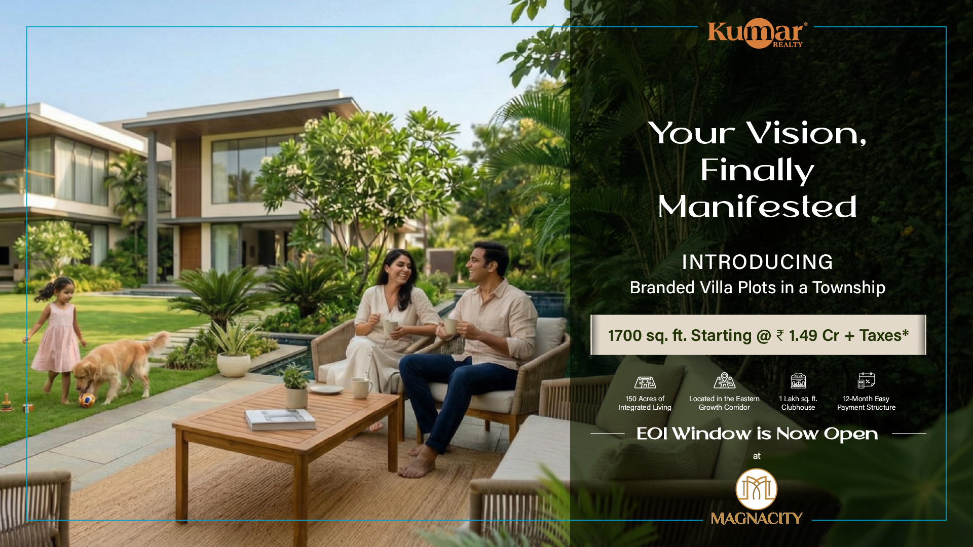 Developed by Kumar Realty, a trusted name with 57+ years of legacy and 135+ completed projects, Kumar Magnacity promises quality, comfort, and a vibrant community living experience.